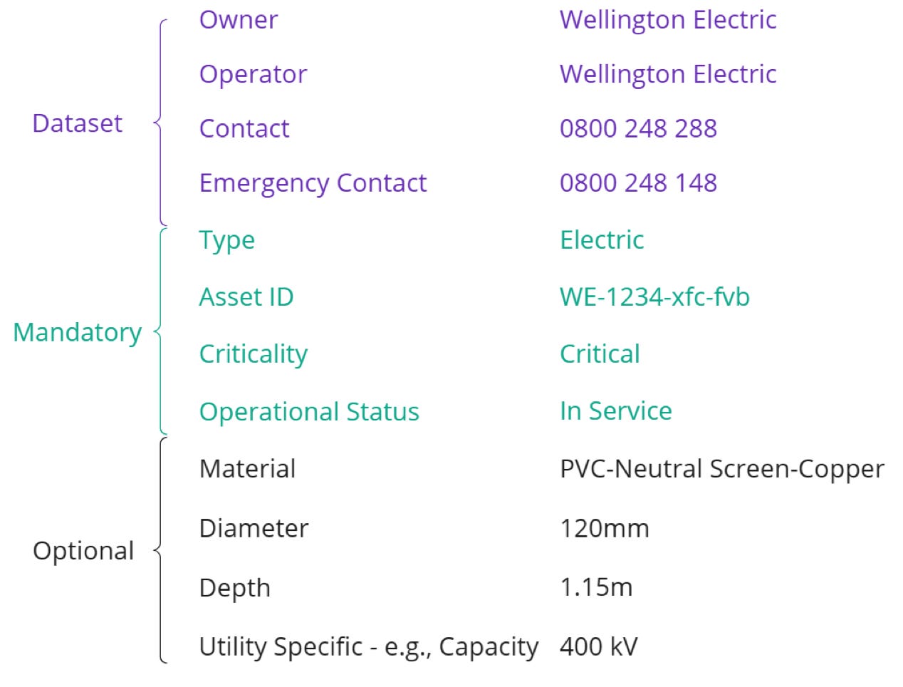 Through this collaboration process – one of the most interesting aspects of the UAR’s experience – partners agreed on the type of information, standards and sharing mechanisms of the UAR. For example, assets’ attributes such as type (water main, sewer, power cable…), ownership, dimension, material, installation data and positional accuracy need to be included in the register. Metadata also describes how each dataset was collected, its refresh rate and usage constraints. See an example of some of the data collected per asset: